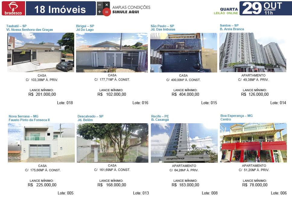 18 IMÓVEIS - (GO, MT, MA, MS, MG, PE, RS, SC E SP)