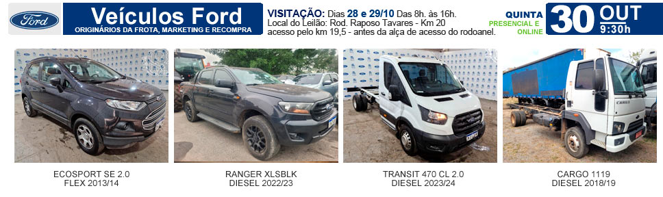LEILÃO DE VEÍCULOS FORD DA FROTA DE SERVIÇO, GARANTIA E MARKETING