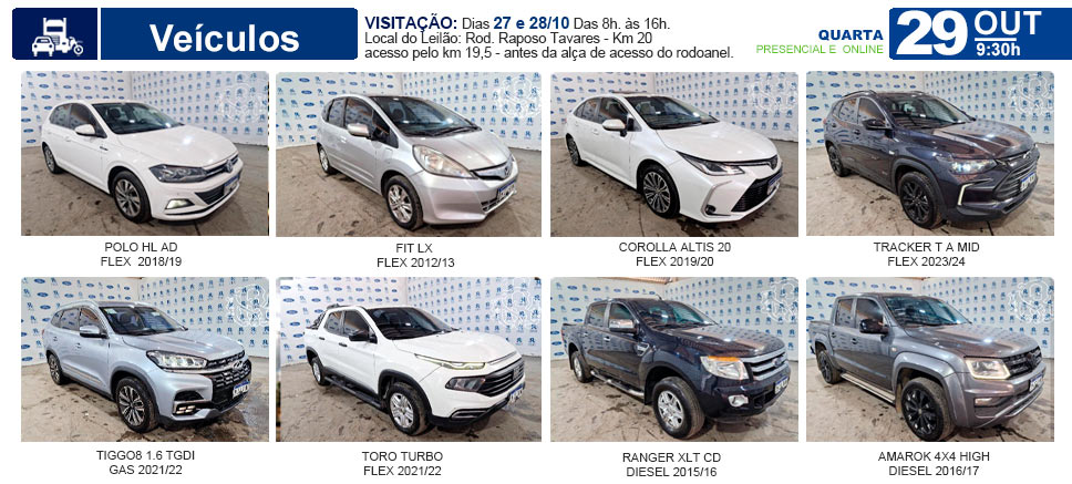 LEILÃO DE VEÍCULOS DIVS. COMITENTES - RECUPERADOS DE FINANCIAMENTO