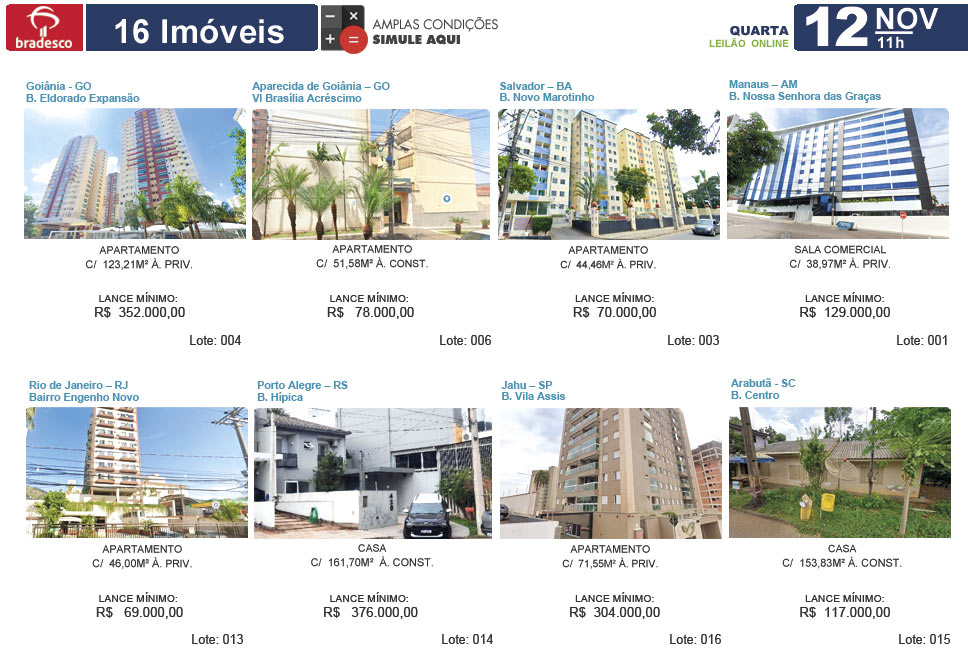 16 IMÓVEIS - (GO, MT, MA, MT, MG, PE, RS, RJ, PA, SC E SP)