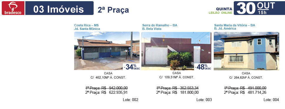 18 IMÓVEIS - (GO, MT, MA, MS, MG, PE, RS, SC E SP)