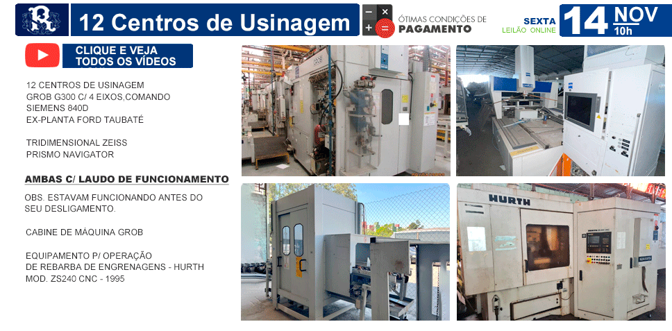 OPORTUNIDADE EM LEILÃO ! 12 GROB´S - *** MÁQUINA PERTENCIA A EX FORD DE TAUBATÉ - ESTAVA FUNCIONANDO ANTES DO SEU DESLIGAMENTO ***