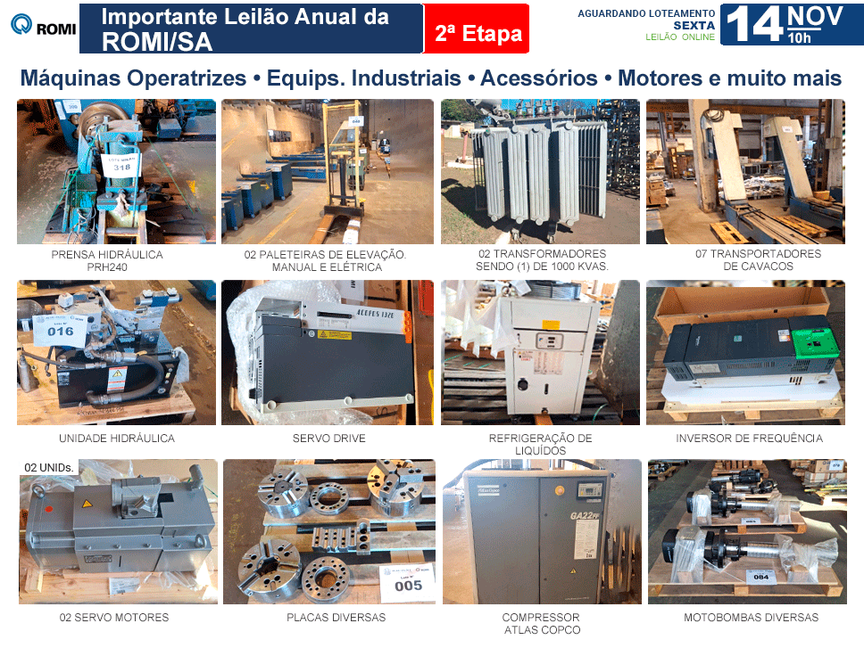 LEILÃO DE MAQUINAS E EQUIPAMENTOS - ROMI S.A. - 2ª ETAPA